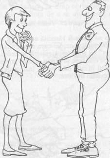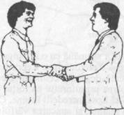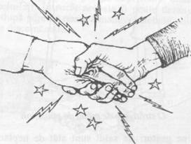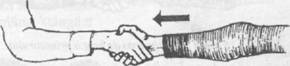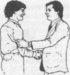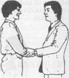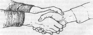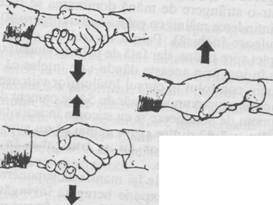 Când doi oameni, ambii cu intentii de dominare, îsi strâng mâinile, are loc o lupta tacita si, desigur, simbolica între ei, întrucât fiecare încearca sa întoarca palma celuilalt într-o pozitie de supunere. Rezultatul este o strângere de mâna asemanatoare unei menghine, când cele doua palme ramân în pozitie verticala si fiecare din cei doi încearca fata de celalalt un sentiment de respect si consens (Figura 22). în acest mod îl învata tatal. pe baiatul sau sa strânga "barbateste" mâna celuilalt.