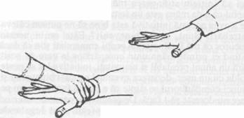 Cu prilejul întâlnirilor de zi cu zi, oamenii utilizeaza doua pozitii de baza ale palmelor, în prima din ele, palma este îndreptata în sus si ea e caracteristica pentru cei care cersesc (Figura 17). în cea de a doua, palma este îndreptata în jos, de parca ar opri sau ar retine ceva (Figura 18). . "