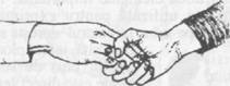 Apucarea vârfului degetelor seamana cu o împingere înainte a unui brat rigid care si-a pierdut tinta. Cel care o foloseste prinde din greseala degetele celuilalt. Desi gestul initiatorului poate parea primitorului ca fortat si pasionat, în realitate el denota lipsa încrederii în sine. Ca si aruncarea bratului rigid înainte, si apucarea vârfului degetelor este un gest menit sa tina la o distanta corespunzatoare parte-" cealalta (Figura 32).