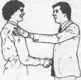 transmita, iar amploarea acestui plus de sentimente este direct legata de drumul parcurs de mâna stânga a initiatorului pe bratul drept al primitorului. Apucarea cotului, de exemplu, (Figura 35), transmite mai multe sentimente decât prinderea încheieturii mâinii (Figura 34), iar prinderea umarului