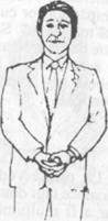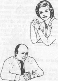 Se pare ca exista o anumita corelatie si între nivelul 'a care mana este ridicata si gradul de dispozitie negata a individului: te întelegi mai greu cu unul care tine mâinile înclestate într-o pozitie ridicata, ca în Figura 39, decât cu cel care procedeaza ca în Figura 40. si aici, ca în cazul tuturor gesturilor negative, trebuie facut ceva pentru ca degetele celui în cauza sa se desfaca, iar palmele si partea din fata a corpului sa devina vizibile, altfel atitudinea sa ostila se va mentine.