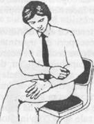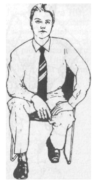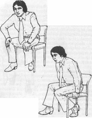 în cazul gesturilor de pregatire care semnalizeaza dorinta de a încheia o conversatie sau o întâlnire, mâinile sunt asezate pe genunchi si trupul aplecai înainte (Figura 101) sau mâinile apuca scaunul, trupul având aceeasi pozitie (Figura 102).