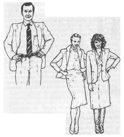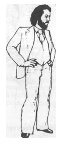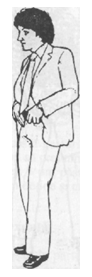 Pentru interpretarea corecta a atitudinii unei persoane este, de asemenea, important sa fie luate în considerare împrejurarile si gesturile nemijlocit premergatoare utilizarii pozitiei mâinilor la solduri. si alte gesturi pot contribui Ia sustinerea concluziilor noastre. De exemplu, daca haina celui în cauza este descheiata si împinsa spre spate sau este încheiata atunci când adopta aceasta pozitie agresiva. Gestul facut cu haina încheiata denota frustrare agresiva, pe când haina descheiata si împinsa spre spate (Figura 98) exprima o postura direct agresiva; individul expunându-si deschis inima si beregata îsi manifesta non-verbal îndrazneala si tenacitatea. Caracterul agresiv al acestei pozitii poate fi accentuat si mai mult daca se sta cu picioarele îndepartate unul de celalalt sau daca grupul de gesturi este însotit de palmele tinute pumn.