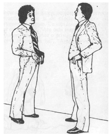 Daca cei doi barbati stau fata în fata cu picioarele ferm înfipte, conflictul deschis, dupa toate probabilitatile, nu va putea fi evitat (Figura 106).
