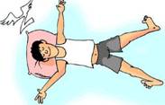 Pe spate, cu ambele brate pe langa corp. Esti in general rezervat si tacut.