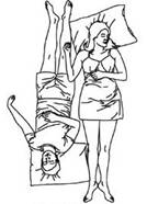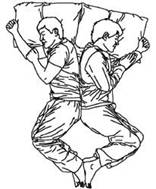 pe burta, celalalt pe spate; unul cu capul in dreapta, celalalt in stanga.