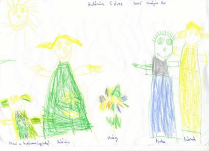 aproape de bunica si de tatal lui, iar mama este ocupata aproape tot timpul de fratele lui mai mic.