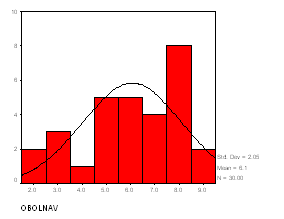 Si in cazul factorului O, scorurile se grupeaza diferit in cazul celor doua esantioane, curba avand un caracter asimetric, acest lucru observandu-se in grafic. Subiectii grupului experimantal, subiecti cu atac de panica, au obtinut scoruri grupate in jurul valorilor mari (8.0 ) spre deosebire de subiectii celuilalt grup care au obtinut scoruri grupate spre valorile mici (2.0). Acest lucru, din punct de vedere psihologic, arata ca subiectii bolnavi de atac de panica au tendinte depresive, anxioase, si sentimente de culpabilitate. In opozitie, persoanele sanatoase rezulta ca sunt mai calme, mai increzatoare in sine, mai senine. Aceste date coreleaza si cu ceve obtinute prin intermediul anamnezei si al observatiei. Chiar si simtomatica stabila si cea labila descriau persoane anxioase. Acest lucru se poate datora si starii de boala, insa noi am masurat factori de personalitate, si am pornit de la ideea ca acestia nu se modifica pe parcursul vietii sub influenta evenimentelor de viata.