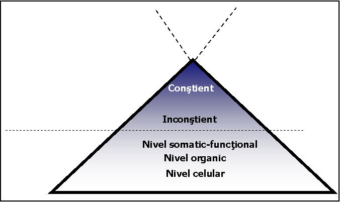 Specific sistemului psihic uman, este faptul ca informatia este integrata la diferite nivele. Modelul interactional-comunicational cibernetic postuleaza calitatea de continuum informational[10], dar caracteristicile integrarii pun in evidenta faptul ca psihicul este caracterizat prin bipolaritate, prin existenta a doua instante (a doua planuri de integrare a informatiei):