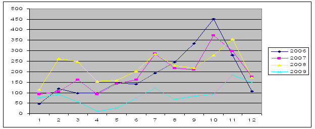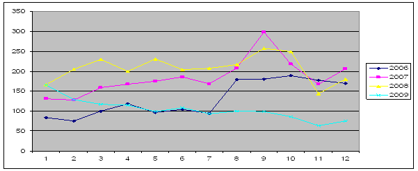 Analiza de fluctuatie pe posturi pentru fiecare dintre anii 2006, 2007, 2008, 2009