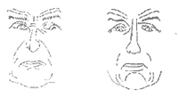 b) Directia privirii joacă, de asemenea, un rol important în determinarea expresiei fetei. Nedumerirea, efortul de rememorare sunt însotite de obicei de asa-numita "privire în gol". Privirea în jos sau în lături poate semnifica atitudine de umilintă, sentiment al vinovătiei, rusine etc. Privirea în sus, peste capul interlocutorului, denotă de regulă lipsă de respect pentru acesta. si, în sfârsit, ochii îndreptati ferm către interlocutor sustinând fără dificultate privirea acestuia denotă sinceritate, atitudine deschisă, hotărâre sau, în alte situatii asprime, atitudine critică, dojană, iar uneori provocare.