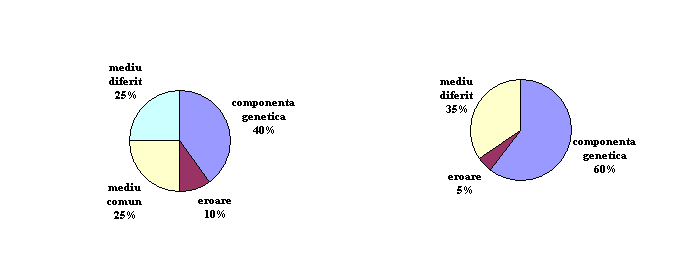 Unul dintre cele mai surprinzatoare rezultate din cercetarea genetica este ca, pentru cele mai multe trasaturi psihologice altele decat abilitatea cognitiva, asemanarea dintre rude este explicata prin ereditatea lor comuna mai degraba decat prin mediul lor comun. De exemplu, riscul pentru schizofrenie este la fel de mare pentru copiii parintilor schizofrenici fie ca sunt crescuti de parintii lor biologici, fie de catre parintii adoptivi chiar de la nasterea copiilor. Aceasta constatare indica faptul ca mediul familial comun nu contribuie intr-un mod important la similitudinea familiala. Aceasta nu inseamna ca mediul sau chiar mediul familial este neimportant. Cercetarile din domeniul genetici cantitative, cum ar fi studiile de adoptie furnizeaza cele mai bune dovezi disponibile pentru a evidentia influenta mediului. Riscul pentru rudele de gradul I al probanzilor schizofrenici care, au o similitudine genetica de 50% este doar de aproximativ 10%, nu de 50%.