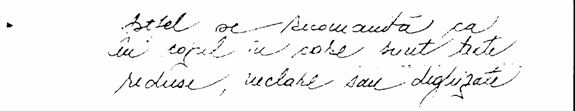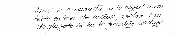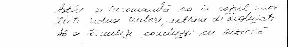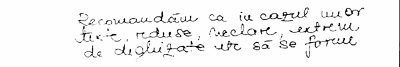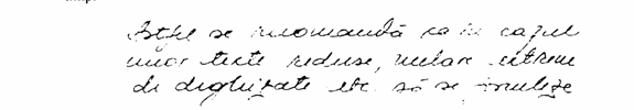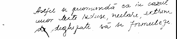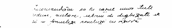 Scrisul precis are toate trasaturile executate cu siguranta, nu se observa nici un fel de ezitari.