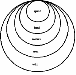 Proportiile si ordinea modalitatilor senzoriale umane, pot fi reprezentate ca in figura urmatoare (vezi figura 7):