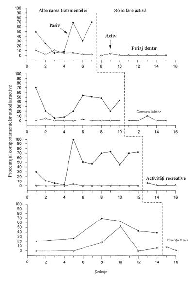 In conditiile in care s-a recurs numai la interventia avand ca rol implicarea subiectului, comportamentele autodistructive s-au mentinut la o rata redusa.