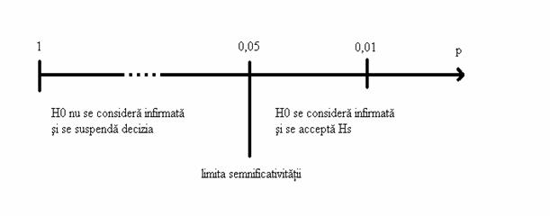 Daca īnsa probabilitatea ipotezei nule este mai mare de 5%, atunci nu ne putem asuma riscul respingerii ei si vom considera diferentele obtinute ca fiind nesemnificative.