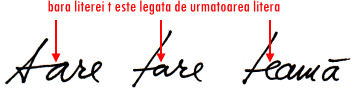 In figura 3 nu putem analiza imaginea de sine. Initial te poate tenta sa spui ca este o imagine de sine slaba, insa nu este asa. Nu poti sa te pronunti asupra imaginii de sine din astfel de litere t. Trebuie sa gasesti in scris litere t care nu sunt legate de litera urmatoare, ca in exemplele din figura 2.