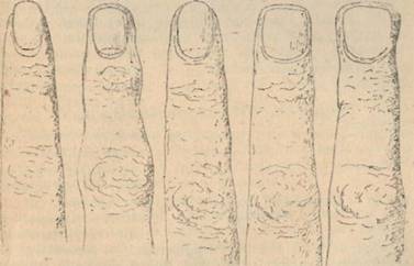 Fig. 59 - Degete netede-(a), cu noduri (b), ascutite (c), . patrate (d), spatulate (e).