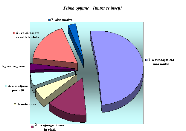 Prima optiune la "Chestionar motivational" - întrebarea "De ce trebuie sa învete un elev?"