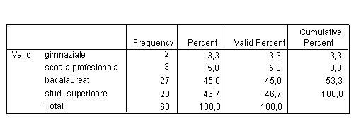 ( Tabel 1.Figura 1). Categoriile de vārsta se īncadreaza īntre 14-18 ani. (Tabel 2, Figura 2).