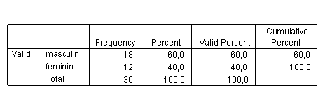 Lotul chestionat este alcatuit din 12 subiecti de sex feminin si 18 subiecti de sex masculin. ( Tabel 1.Figura 1). Categoriile de vārsta se īncadreaza īntre, 14-18 ani.(Tabel 2, Figura 2).