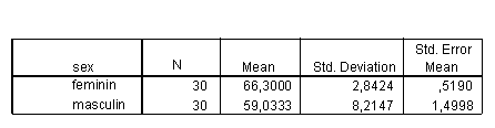 Media (M=59, SD=8,214) pentru valorile testului īn ce priveste predispozitia parintilor de gen masculin asupra relatiei afective cu adolescentii , este mai mica (t=4,579, D=58, two tailed p=0,000 ) fata de parintii de gen feminin (M= 66,30, SD=2,842).