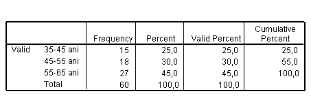 Tabel 2- Frecventa de aparitie īn functie de vārsta