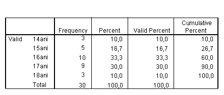 ( Tabel 1.Figura 1). Categoriile de vārsta se īncadreaza īntre 14-18 ani. (Tabel 2, Figura 2).
