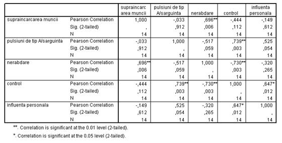 Tabel 5.14. Corelatia dintre "Supraîncarcarea muncii" si "Nerabdare".
