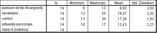 Tabel 5.17. Corelatia dintre Responsabilitatea personala" si "Pulsiune de tip A", "Nerabdarea", "Control", si "Influenta personala".