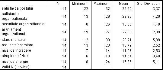 Ipoteza de start a fost aceea ca factorii stresului ocupational influenteaza negativ sau pozitiv sanatatea mentala, sanatatea fizica si nivelul de energie resimtit la locul de munca.