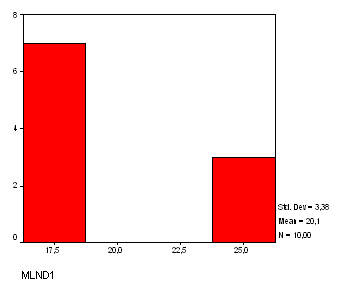 MLND1 reprezinta variabila memoria de lucru numerica directa la subiectii normali. Aceasta variabila a fost testata cu proba de memorie numerica directa din testul WISC. Scorurile reprezinta câte numere au fost capabili sa repete subiectii testati în urma ascultarii lor. Media acestor reproduceri este de 20,1, iar valoarea minima este de 18 respectiv 25 cea maxima. S-a obtinut o mediana de 18 si o abatere standard de 3,38. Ceea ce înseamna ca valorile se încadreaza în intervalul 18 - 3,38 si 18 + 3,38.
