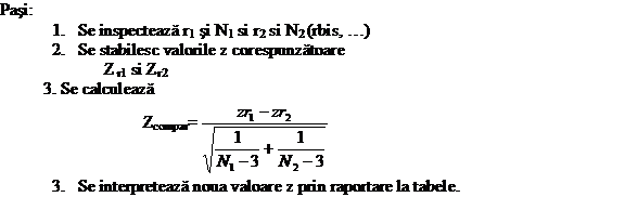 diferenta dintre p1 si p2 este semnificativa (sub un risc asumat) sau
