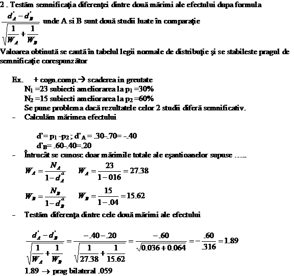 Compararea marimii efectului