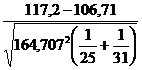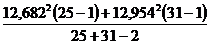 df = 25 + 31 - 2 = 54