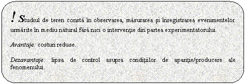 (a) posibilitatea controlului sistematic de catre experimentator a conditiilor de observare,