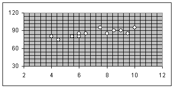 Pe abscisa s-a trecut nota de competenta iar pe ordonata cota de stabilitate n companie. Un astfel de grafic este numit diagrama de corelatie sau grafic bivariat, aceasta deoarece el ilustreaza distributia de asociere a doua variabile, punctele de pe grafic reprezinta asocierea dintre scorurile de performanta profesionala si stabilitatea n companie. De exemplu, punctul din partea de jos - stānga de pe grafic, arata ca unei cote de competenta de 4.50 īi corespunde o cota de stabilitate de 75.