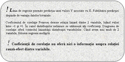 Este important de stiut ca linia de regresie este o estimare mai mult sau mai putin fidela, aceasta n functie de variatia n distributie a punctelor datelor bivariate. Coeficientul de corelatie dintre cele doua variabile fata de care se face predictia joaca un rol fundamental. Cu c t acesta este mai mare, deci asocierea mai buna, cu at t predictia sau prognosticul va fi mai bun. Aceasta este de fapt esenta utilizarii analizelor corelationale, de predictie a unui anumit comportament. Karl Pearson a introdus coeficientul de corelatie care nu este altceva decāt un indice care descrie relatia liniara dintre doua variabile. El oscileaza īntre 1. Un coeficient de corelatie de zero ne indica absenta corelatiei īntre doua variabile. O corelatie pozitiva īnseamna ca cele doua variabile studiate covariaza īn aceeasi directie (exemplu: pregatirea profesionala si rezultatele de la locul de munca); corelatia negativa ne indica o relatie inversa - cu cāt valoarea unei variabile creste, cu atāt valoarea celeilalte descreste - (vārsta si acuitatea vizuala). De asemenea, cu cāt valoarea coeficientului de corelatie (r) creste (tinde spre 1), cu atāt predictia care se poate face este mai precisa
