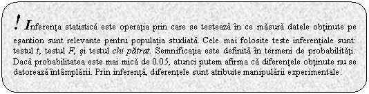 Testele inferentiale obisnuite sunt testul-t, testul-F si chi patrat (Χ ). Cu ele putem determina daca doua sau mai multe grupuri de subiecti (de exemplu, grupul experimental si cel de control) difera sau nu īn conexiune cu variabilele studiate. Este, de fapt, un alt mod de a spune ca cercetatorul poate avea īncredere ca anumite raporturi (nivel de realizare profesionala, rezistenta la factori stresanti etc.). Semnificatia este definita īn termeni de probabilitati. Astfel, o diferenta poate fi semnificativa la un nivel de probabilitate de 0.05 (notat p=0.05), adica ne putem astepta ca īn 5 cazuri din 100 diferenta sa se datoreze īntāmplarii. Īncrederea īn rezultatele obtinute va fi mai mare daca diferenta se datoreaza īntāmplarii numai īntr-un singur caz din 100 (p= 0.01). O semnificatie sau īncredere mai redusa este cānd exista 10 sanse din 100 ca sa apara diferenta.
