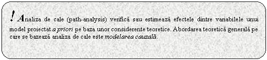 Analiza de cale (path analysis) nu este o metoda de descoperire a relatiilor cauzale, ea testeaza doar relatia teoretica denumita "modelare cauzala". Ea este o forma extinsa a analizei de regresie liniara care permite formalizarea unei teorii cauzale (Rotariu, Badescu, Culic, Mezei & Muresan, 1999). Deci, īntotdeauna cānd se doreste construirea unei scheme cauzale, punctul de start consta īn stabilirea unor ipoteze sau presupuneri legate de sensul cauzalitatii. Se poate structura un model cauzal atunci cānd (Schumacker & Lomax, 1996):