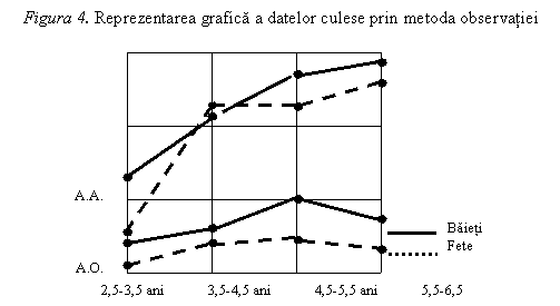 In figura de mai sus sunt ilustrate interactiunile copiilor dintr-o gradinita, care au fost consemnate pe baza observatiei. S-a constatat ca frecventa interactiunilor cu intentii prietenesti (A.A.) cresc odata cu varsta si descresc contactele ostile. (dupa H.R. Marshall, citat de Ana Tucicov-Bogdan)