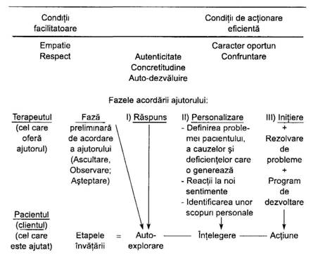 Carkhuff si Truax (1967) s-au oprit mai ales asupra aspectelor esentiale ale relatiei de ajutorare a celuilalt, subliniate de Rogers si anume întelegerea empatica, abordarea pozitiva neconditionata a pacientului si autenticitatea relatiei cu acesta. Cercetarile ulterioare au adaugat la aceste conditii si concretitudinea, oportunitatea si caracterul direct al relatiei psihoterapeutice (Carkhuff, 1969 a; 1969 b). Cu timpul în programele de formare a psihoterapeutilor a fost inclusa si abilitatea de a rezolva probleme de viata.