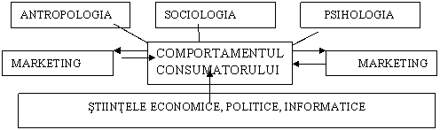 Analistii comportamentului consumatorului studiaza reactia consumatorului la cumpararea diferitelor produse/servicii. Intrucat, modul in care reactioneaza consumatorul la diverse produse/servicii se poate masura prin comportamentul pe care il manifesta, se poate vorbi despre dinamica acestui comportament al consumatorului. Tema generala care sta la baza acestui domeniu este determinarea acelor factori care influenteaza dinamica comportamentului consumatorului. Ca si materie de studiu, comportamentul consumatorului este privit ca o activitate cu caracter interdisciplinar (Figura 6), fiind la intersectia mai multor stiinte: ecomonie, antropologie culturala, sociologie, psihologie.
