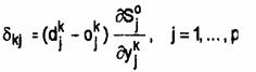 Definim functia de eroare partiala Ek drept o suma de diferente dintre iesirea dorita si cea actuala
