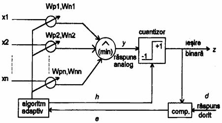Vectorul pondere este ajustat dupa diferenta e între iesirea dorita si raspunsul sistemului la diferite intrari în cursul instruirii iar h se calculeaza cu operatii logice fuzzy