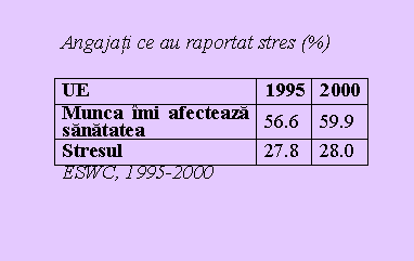 În ultimul deceniu, în Uniunea Europeana, stresul legat de munca a fost identificat ca fiind una dintre problemele majore de la locul de munca - reprezinta deci o provocare nu n 12212d36m umai pentru sanatatea angajatilor, dar si pentru sanatatea organizatiei lor. În sondajele cu privire la conditiile de munca efectuate în 1996, respectiv 2000, 28% dintre angajati au raportat probleme legate de stres ; aceasta cifra este depasita doar de durerile musculo-scheletice. Mai mult, studiile din UE si nu numai sugereaza ca 50-60% dintre zilele de munca pierdute au drept cauza stresul.