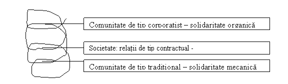 B. Teoria evolutiei în spirala de la comunitate traditionala la comunitate corporatista cu trecere prin societate de tip contractual - elaborata de E. Durkheim