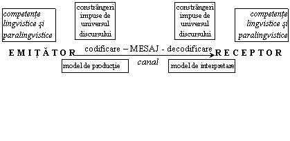 O prima îmbunatatire fata de modelul Jakobson este reprezentata de introducerea situatiei comunicantilor (emitatorul si receptorul) sub forma constrângerilor impuse de universul discursului. Se realizeaza astfel o delimitare clara între cele doua profiluri aferente, delimitate pe mai multe tipuri de "competente":