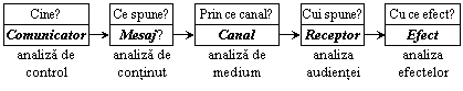 Harold D. Lasswell a formulat o abordare sociologica paradigmatica de referinta a comunicarii de masa conturând un model de transmitere specific abordarilor functionaliste. Aceasta reprezentare se distribuie pe urmatoarele componente: