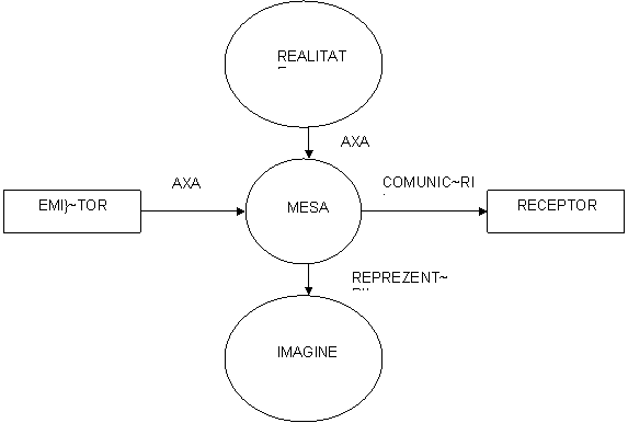 Totusi, ar trebui sa ne grabim a spune ca lucrurile ar fi cel putin nepermis simplificate daca ne-am opri la afirmatia ca obiectul de studiu al imagologiei este imaginea celuilalt. Imaginea in general si imaginea celuilalt in special apar intr-un anumit mental, individual sau colectiv, pentru ca acest mental absoarbe informatii despre realitatea inconjuratoare si, in acest context, despre celalalt. Informatiile percepute din mediul social se prezinta sub forma unor mesaje, pentru ca aceste informatii sunt emise de celalalt cel putin in doua situatii: ca urmare a manifestarii existentei celuilalt si ca urmare a afirmatiilor pe care le exprima celalalt despre el insusi. Aceste mesaje sunt receptate de catre oameni, institutii, etnii in procesul comunicarii, de aceea, putem afirma ca imaginea celuilalt se formeaza in procesul comunicarii dintre oameni, dintre oameni si institutii, dintre institutii, dintre etnii. Explicatia plauzibila poate fi gasita cu ajutorul modelelor psiholingvistice ale comunicarii , care vorbesc de o dubla dimensiune a mesajului. Astfel, din perspectiva acestor modele, mesajul este un element al circuitului informational si un intermediar intre realitate si imaginea acestei realitati (fig. 1). Apare aici ideea reprezentarii simbolice, care opereaza cu distinctia intre realitate si modul de transpunere a acesteia in cuvinte si imagini.